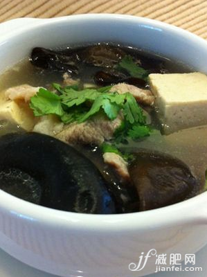 2.豆腐切成片,将豆腐与黑木耳加入鸡汤、盐,同炖10分钟,即可食用。