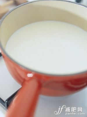 2、炖锅中加入适量的水,在加入1/2杯牛奶,放入切好的甘薯,中火煮开后换小火再煮3分钟。