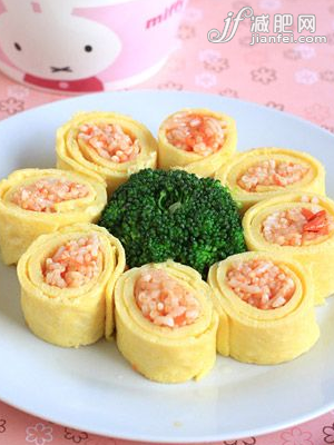 点评:对于不敢吃主食的减肥人士来说,这款胡萝卜番茄饭卷是非常不错的选择。因为这款美食不仅包含了富含维生素和钙质的胡萝卜,还有能够让脂肪快速燃烧的番茄,以及主食米饭。胡萝卜能够有效的消除堆积在体内的多余脂肪和水分;番茄中的柠檬酸能促进糖分代谢,燃烧脂肪;而番茄红素则能抑制脂肪细胞增多,并吸收多余脂肪。