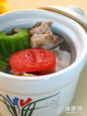 制作:把苦瓜去瓤后切段,可以切小一些方便烹煮。西红柿切大片,玉米切为小段,一同放入大锅中熬煮,苦瓜在熬煮过程中苦味素会散到汤中,与番茄素和果酸物质结合后苦感会大幅降低。等到玉米也完全煮软后,加少许盐和味精就可出锅饮用。