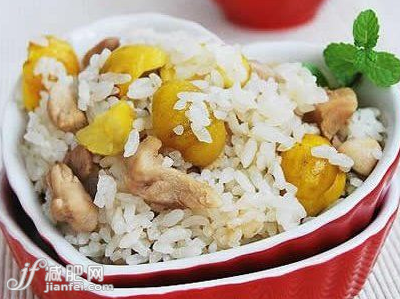 板栗是壳类果实中脂肪含量最低的,这款栗子炒饭可以强化肠道,促进肠胃蠕动,保持排泄系统正常运作,改善便秘、及时排出毒素。