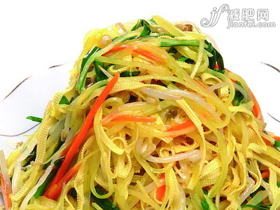 4、炒合菜由六种原料合炒,原料中的虾仁和香干提供了较高的动物蛋白和植物蛋白,其他的四种原料也补充了很多营养素,而且纤维素丰富,是减肥者的保健菜肴。