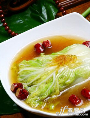 原料:圆白菜500克、盐、醋、高汤。