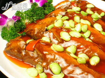 【选料】黄鱼400克,豆瓣酱20克,冬瓜20克,植物油10克,清汤300克,料酒、精盐、葱、姜各适量,味精少许。