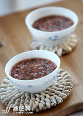 做法:准备同等分量的红豆和薏米,洗干净后,红豆泡两至三个小时,薏米泡一个小时,大米洗干净后,泡半个小时,备用;在沸水中加入红豆,煮开后,添一些凉水,再煮开后,再添凉水;等红豆煮开花后,放入大米和薏米,大火煮开后,转小火煮至粘稠,就放冰糖调味即可。