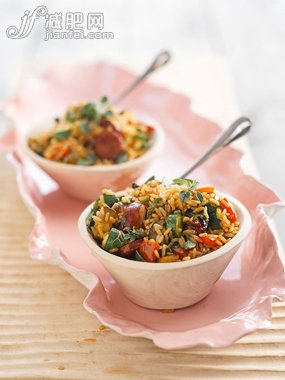 营养亮点:多种配料带来的复合口味不但能满足味觉,更能满足身体需要,但要注意扬州炒饭不宜油脂过多,在用量上要控制在150g以内。
