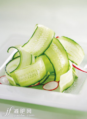 黄瓜不仅热量很低,其中所含的果胶、纤维素能够帮助降低胆固醇,促进肠道废物的排泄,预防便秘。更让人惊喜的是黄瓜所含的丙醇二酸,可以抑制碳水化合物转换为脂肪。