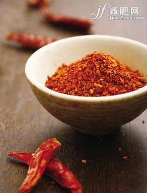辣味浓郁的辣椒粉,能令促进食欲的饥饿激素活动减弱,控制住食欲,自然减少食量。而辛辣成分辣椒素,则能促进血液循环,令摄入的营养随着血液输送到身体的每个角落,减肥成分一个都不浪费!