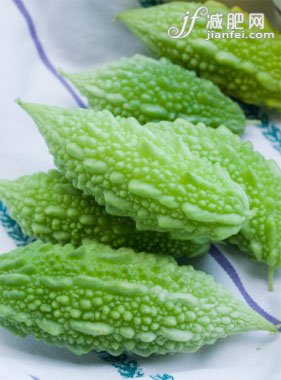 苦瓜减肥很重要的一个原因是苦瓜中所含的的苦瓜甙和苦味素能增进食欲,健脾开胃,促进食物消化,有效的帮助排出体内的有害物质,加速人体新陈代谢。另外,苦瓜本身热量不高,吃苦瓜可以使人体摄入的能量大大减少。最重要的原因是苦瓜含有很高的纤维素,主要可以利尿凉血、解劳清心,其中所含的生物碱类物质奎宁,还有利尿活血、消炎退热、清心明目的功效,所以苦瓜减肥法是一种健康有效的减肥方法。