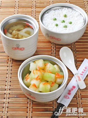 贴士:减肥时食用方法:少量多餐制。饿了就吃上几口,尽量等汤凉了再喝。坚持吃虾仁烩冬瓜,一个月配合适量运动(步行)大约可以瘦身15-20斤左右。请务必注意,不要食用虾头,因为还有很高的胆固醇。
