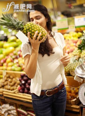 新鲜的菠萝含有丰富的菠萝蛋白酶和铬,菠萝蛋白酶能防止脂肪在体内堆积,铬能让你的血糖水平和胰岛素水平保持稳定,有助于抑制食欲。