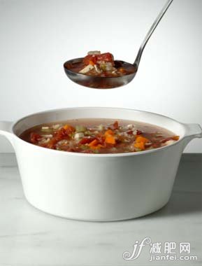 将洋葱、胡萝卜洗净切丝,将芹菜切段,土豆切成块状,西红柿剥皮后切块。将干辣椒与洋葱、胡萝卜一同倒入锅中翻炒片刻,接着将其他蔬菜一同倒入锅中,再注入适量清水一同炖煮,待蔬菜变得软烂后,添加些许盐与香油即可。这款美味的什锦蔬菜汤能有效的促进排毒,消除水肿,抑制脂肪增长等,常食用能轻松减肥哦。