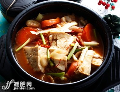 冻豆腐炖排骨有助于健身减肥,益气和中。排骨可以强壮筋骨,益肾填髓;冻豆腐含蛋白质、氨基酸;番茄富含维生素A、C和番茄红素,起到生津消食,降脂减肥的作用。
