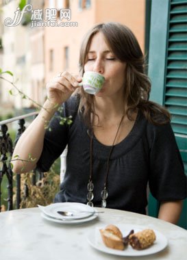 2.品──饭后30分钟到1小时内品尝一杯浓郁的黑咖啡(不加糖、奶),咖啡因有助饭后消化,促进脂肪燃烧;下班时不妨再一杯黑咖啡,配合步行。一般每天4杯是理想的减肥量,但注意:过量就会影响健康及睡眠。