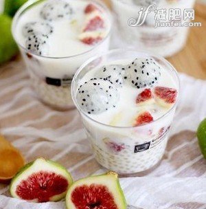 小编碎碎念:无花果含有丰富的维生素、果酸和蛋白酶,是比山楂还要有效的促消化水果,对于肠胃消化不良或是经常便秘腹胀的肥胖人群,具有很好的改善效果。火龙果营养丰富而且热量很低,搭配鲜奶和西米做成奶泡,是最适合早餐时间饮用的甜品。当然最好是能趁热饮用,这样对肠胃也更加有利。