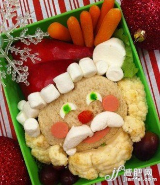 特点:充满爱心的圣诞老人便当是不是让所有餐厅大餐都黯然失色?所有食材里除了棉花糖热量稍微高一些,都是低卡易消化的食材,制作方法也很简单而且充满创意。