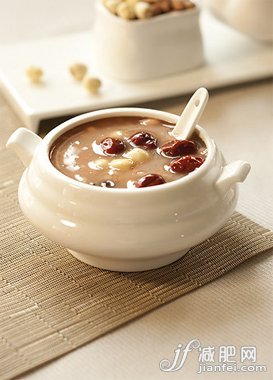 功效:芝麻又称胡麻,《神农本草经》云:“补五脏,益气力,长肌肉,填髓脑,久服轻身不老。”黄豆中的脂肪有降低胆固醇和血脂的作用,所以此粥有减肥瘦身和营养保健作用。