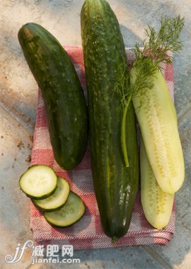 黄瓜中含有一种叫做“丙醇二酸”的物质,它能有效抑制糖类物质转化为脂肪。换句话来说,多吃黄瓜就能防止脂肪的增多。黄瓜的营养很丰富,除了含有大量的水之外,还有维生素、胡萝卜素,以及少量糖类、蛋白质、钙、磷、铁等人体必须的营养素。其中的纤维素对促进肠胃蠕动和加快排泄、降低胆固醇有一定的作用。