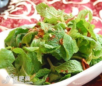 薄荷叶不仅仅能被作为配菜,它同样可以作为绿叶蔬菜、茶饮原料和生食种类,薄荷性凉能起到局部消炎镇静的作用。对于腰腹肥胖和经常便秘的人来说,是非常理想的瘦身食材,因为薄荷中的苦味素和有效成分能加速肠胃运动、促进新陈代谢,改善肠胃不适带来的臃肿和肥胖。