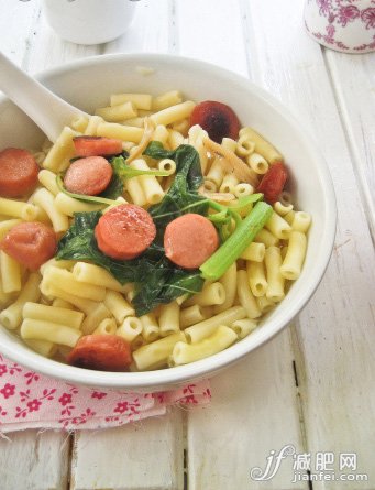 1.通心粉先煮熟后,放进冷水后,沥去水份,备用。