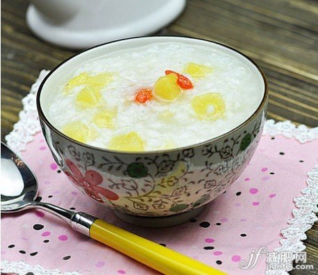 2、做法:将紫糯米、薏仁、莲子、小米、糙米、大枣等洗净;将上述材料放入电饭锅中,按煮粥键即可;将蜂蜜拌入煮好的粥中,放入适量的玫瑰酱。
