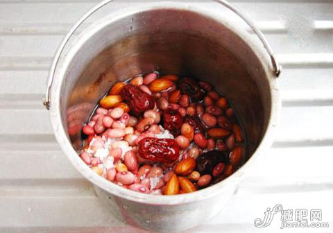 Tips:红豆糖水大家喝得多了,有没有试过红豆加薏米呢?在功效上说,红豆健脾止泻,利水消肿,和薏米一起煮,有助消化,排毒养颜。此前,香港更是出了一种红豆减肥法,有兴趣的MM们可以试试。具体做法如下:先把红豆浸泡半个小时, 加入煮滚的500cc清水中, 煮30分钟左右,要把红豆煮熟就对了, 然后熄火。 用热水把陈皮浸软, 待红豆煮熟熄火后, 就把陈皮放入红豆汤中, 上盖闷十分钟,之后加上一点盐就可以了。每日餐后饮用, 至少吃两个星期。不过这种方法仅供参考,小编认为,红豆加上薏米一起煮,瘦身效果会更加显著哦。