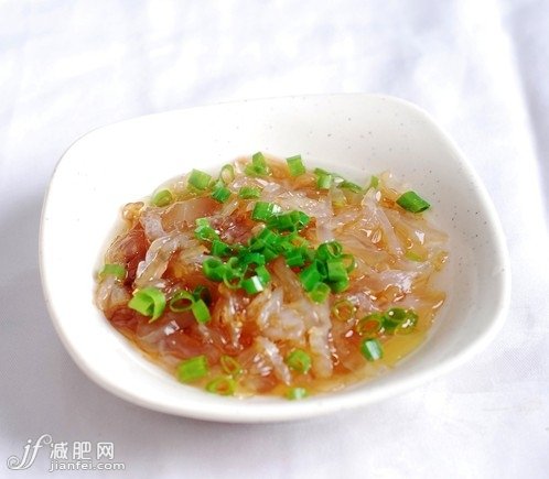 100克海蜇丝的脂肪含量也很低,吃一盘海蜇丝相当于只吃了一个半苹果,而且又大大满足了你的口腹之欲。海蜇富含蛋白质、钙以及多种维生素,尤其含有人们饮食中所缺的碘,是一种高蛋白、低脂肪、低热量的营养食品。