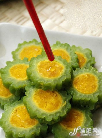 小编点评:这道菜创意十足,色泽艳丽。苦瓜夏天吃清热祛火,排毒养颜,配上南瓜营养又低脂,减肥中的MM们也大胆丰富自己的饮食啦。