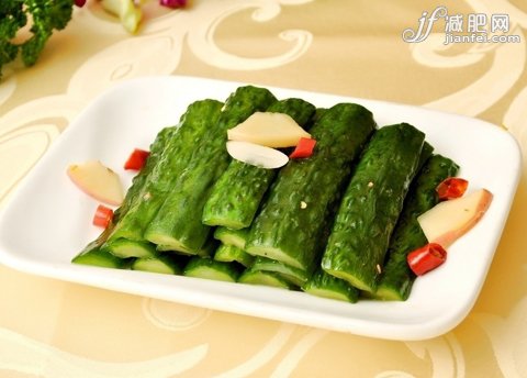 黄瓜所含的黄瓜酸,能促进人体新陈代谢,排出毒素;维生素C的含量比西瓜高五倍,能美白肌 肤,使其保持弹性,抑制黑色素的形成。而且,黄瓜还能抑制糖类物质转化为脂肪,对肺、胃 、心、肝及排泄系统都非常有助。