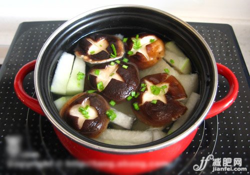 3、用大火煮开,再转文火即小火熬煮约30分钟。