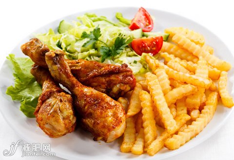 •尽量用脂肪含量少的肉类•鱼类来替换主食。