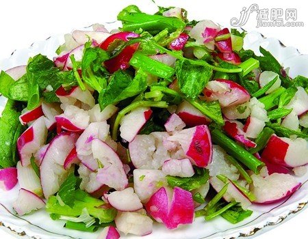 樱桃萝卜富含钙铁锌硒和多种维生素、粗纤维,性偏凉能理气和胃、除燥生津,是夏季不可多得的降暑除湿蔬菜。加上含量丰富的淀粉酶和辣素,能有效促进肠胃淀粉分解,加速血液循环达到瘦身效果。快来跟中国减肥网小编学学最简单的三道樱桃萝卜减肥餐吧。