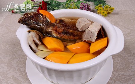 材料:青木瓜半颗、鲜鱼1尾(可随个人喜好选择,最好是适合熬汤的鱼)、水4碗、盐少许。
