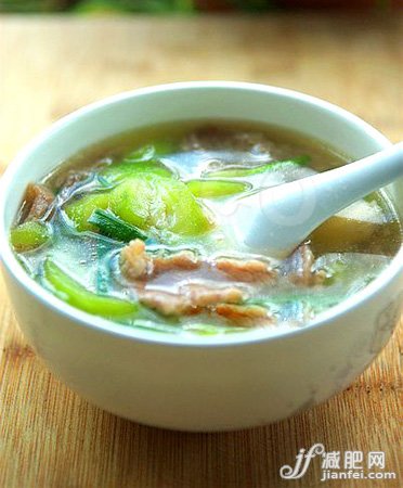 小tips:这款丝瓜滑片汤,清爽嫩滑,有良好的口感,只是要注意在挑选食材的时候,要挑选全瘦的瘦肉,当然也可以用其他脂肪含量较低的肉类代替。