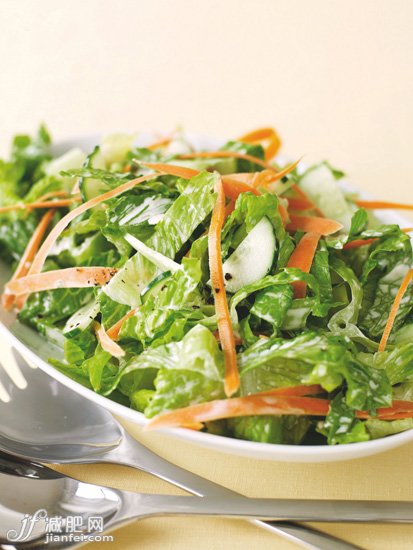 沙拉绝对是减肥期间主食之选,颜色漂亮的沙拉可以让让你胃口大开,但是就算是吃了也不要有负罪感,因为沙拉不大为绿色蔬菜,不含脂肪,热量也很低,完全不会导致脂肪生成哦。