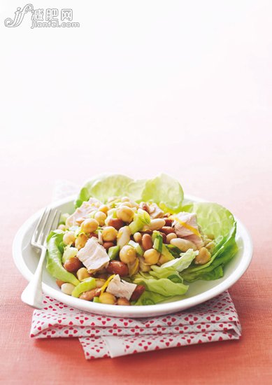 吞拿鱼富含有益于心脏的Omega-3脂肪,而沙拉中的三种豆类则含有丰富的纤维,起到降低胆固醇的作用。