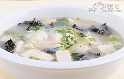 1、冻豆腐化冻后,挤干水份并切小块、黑木耳洗净、番茄酸汤备用; 减肥网(www.jianfei.com)