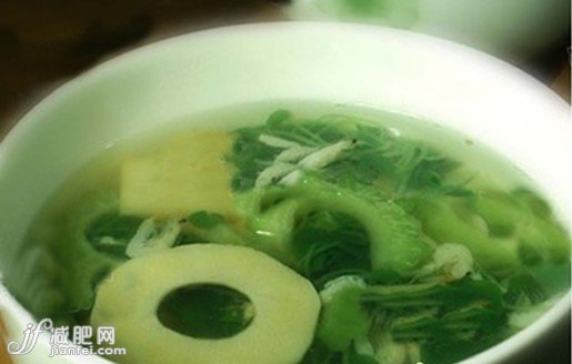 减肥排毒功效:苦瓜有去火消脂、解毒排毒、养颜美容的功效,研究发现,苦瓜中存在一种具有明显抗癌作用的活性蛋白质,这种蛋白质能够激发体内免疫系统的防御功能,增加免疫细胞的活性,清除体内的有害物质。;竹笋有吸附脂肪、促进食物发酵、助消化和促进排泄的作用。