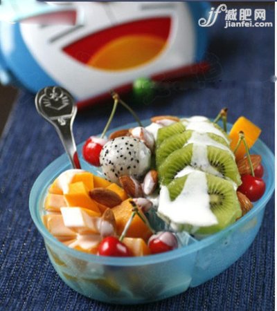 酸奶可以帮助我们促进肠胃的畅通,排出毒素,有效的去除腹部脂肪,在酸奶中搭配其它有营养的水果可以起到更强大的瘦身作用,例如香蕉和奇异果这种营养丰富的水果,搭配上味道纯正的鲜奶就可以制成味道和口感都非常棒的水果酸奶沙拉了。我们可以任意的选择自己喜欢的减肥水果,然后切成小块放入碗中,最后淋上一层低脂酸奶就可以了。