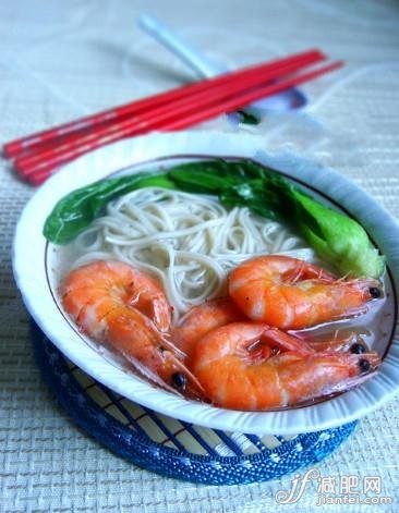 第二步,将鲜虾水煮,放在菠菜卷顶部。