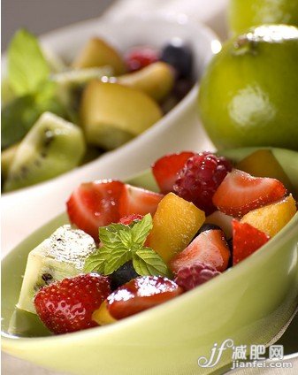 水果中的酵素可以分解脂肪与蛋白质,令其更容易消化吸收,活化细胞,这一系列的机能,可以大大提高能量的消耗效率,减少多余脂肪的积聚。在午餐饭前15分钟的时候吃点水果,能有效饱腹,控制食欲,适度地减少适量,同时摄入大量酵素,帮你快速分解午餐摄入的食物。