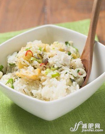 材料:红薯1斤、米半斤、葱屑2大匙、油1匙、盐1/2大匙。