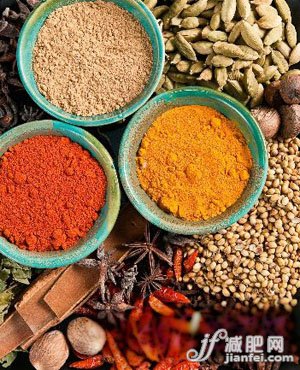咖哩能温和地提升代谢,却不像辣椒般燥热刺激,气血虚弱,不能吃刺激性食物的人也适合。印度咖哩是由多种香料混合而成,包括姜黄、豆蔻、姜黄、月桂叶、番红花等,香料的热量不高,却能帮助燃烧脂肪,促进代谢。姜黄也是除湿大将之一,容易水肿的减肥者,非常值得一试!