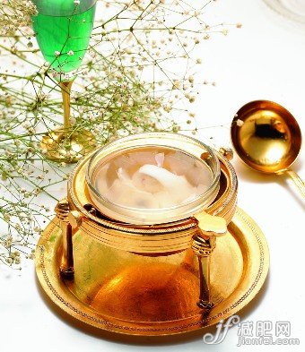 ③冰糖加纯净水对汁,放入银耳、芦荟、枸杞子浸泡入味,撒上香菜即可。