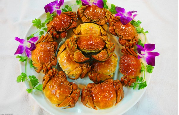 大闸蟹:以“阳澄湖”的为代表,青背白肚黄毛金爪,为好蟹定出了指标。