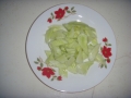 将黄瓜去皮拍成块,最好不要用切的,用刀切过的黄瓜上会留有刀锈味