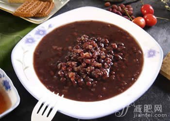 将红豆20克及紫米20克洗净浸过夜,将浸泡的水倒掉加入新水煮熟,再以小火煮至熟透即可,食用时可加入适量蜂蜜。