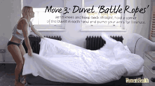 第三步:站在床尾,双手抓住棉被的两个角,然后用力甩动,坚持一分钟。