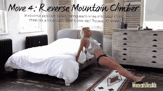 第五步:坐在床沿,但不要坐太满,大腿处尽量处于腾空状态。双手撑住身体,双腿做上下运动,这招可以有效瘦腿瘦腰腹。