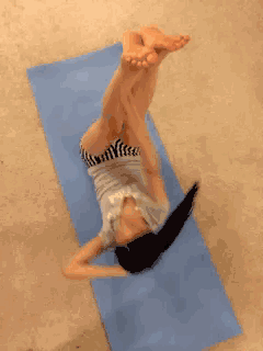 平躺在瑜伽垫上,双臂交叉曲肘,两手相握放于头顶,双腿交叉屈膝(如图),腹部发力,将肩部与腿部向上抬起卷腹。